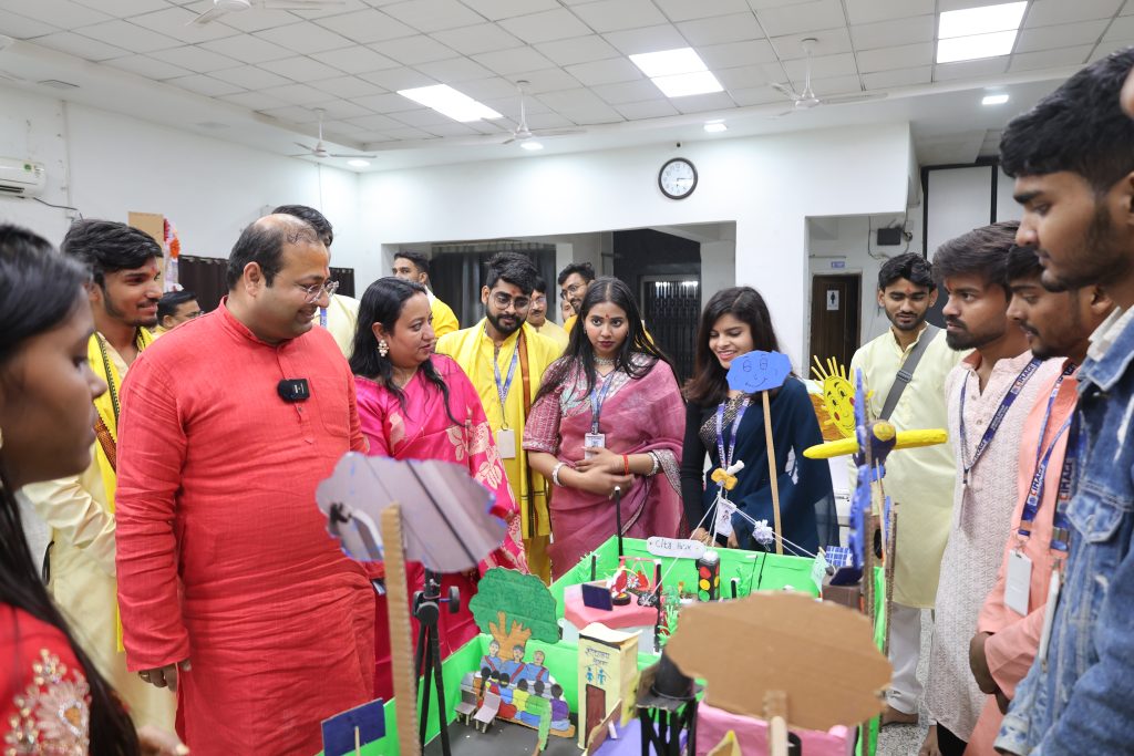 Our leadership team—Director Dr. Prof. Neeraj Agrawal, Ms. Megha Agrawal, and Dean Dr. Neeraj Poddar — conducted a comprehensive walkthrough of the campus festivities. They took a keen interest in the academic and creative exhibits, highly commending the students for their meticulous execution and organized conduct. Their presence underscored the college’s commitment to excellence in every endeavor, whether cultural or scholastic.